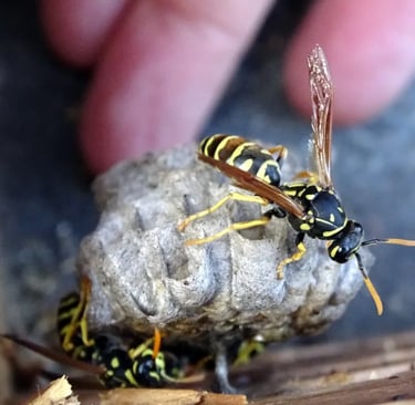 La Guêpe : Souvent attirée par la nourriture (viande, sucre), elle installe ses nids dans les combles, les boîtes de volets roulants ou sous terre.